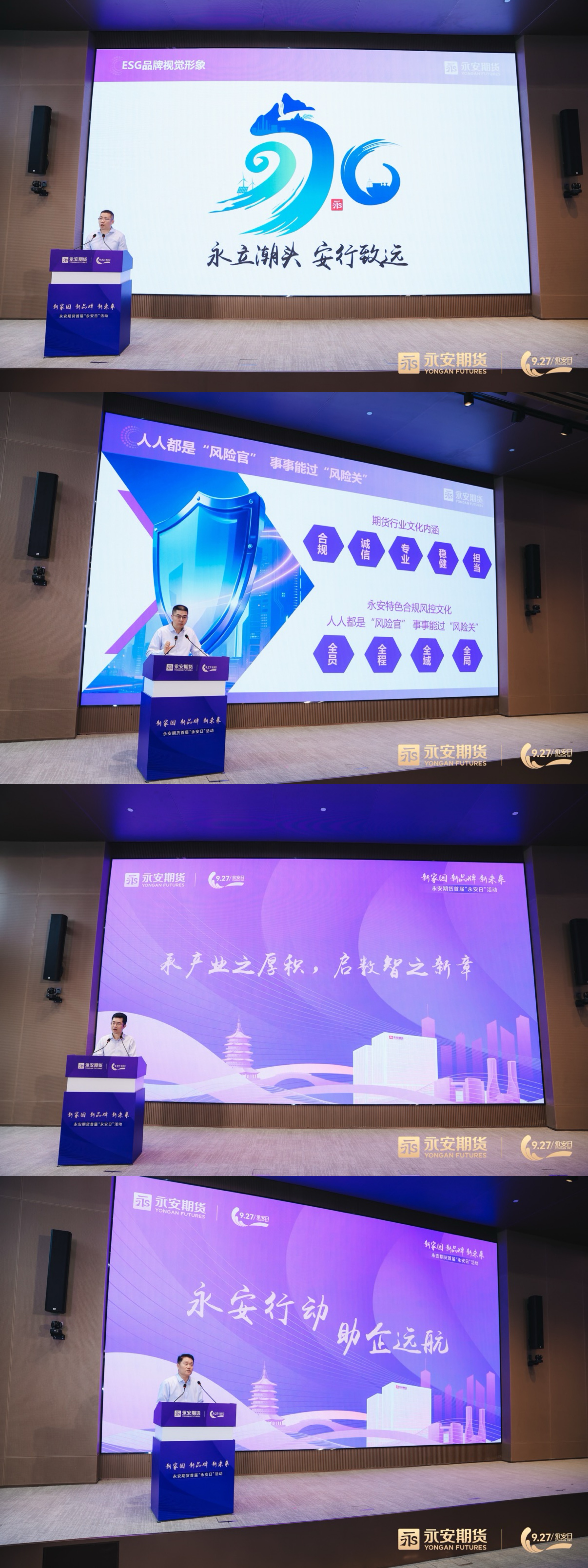 促改革,强发展,以客户为中心 今年也是永安期货“以客户为中心”改革元年,活动现场发布了四项改革成果和品牌:“永立潮头 安行致远”ESG品牌彰显永安期货践行社会责任的坚定决心;“烽燧·监督一张网”全栈式平台筑牢永安期货数智风控的“硬核”防线;“源点智研”品牌以研究转型升级深度赋能客户决策;“永动企航”全生命周期服务体系持续助力实体企业高质量发展。